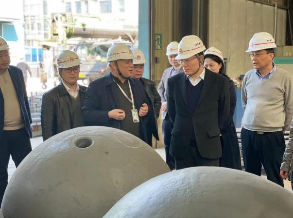 3 月 11 日上午,市常務(wù)副市長(zhǎng)黃化鋒在博望區(qū)書(shū)記竇念華、區(qū)長(zhǎng)馬永陪同下,前往博望區(qū)新市工業(yè)園海天重工企業(yè)進(jìn)行實(shí)地調(diào)研。一進(jìn)入廠區(qū),黃副市長(zhǎng)就被停放在 2#廠房門(mén)口處的大球吸引住了,便走近向企業(yè)負(fù)責(zé)人詢問(wèn),當(dāng)聽(tīng)到企業(yè)負(fù)責(zé)人介紹該大型空心磨球產(chǎn)品現(xiàn)已替代進(jìn)口,填補(bǔ)了國(guó)內(nèi)空白,各項(xiàng)性能指標(biāo)達(dá)到國(guó)際先進(jìn)水平,產(chǎn)品工藝有明顯的集成創(chuàng)新特色,產(chǎn)品技術(shù)成果處于國(guó)內(nèi)領(lǐng)先水平,黃化鋒副市長(zhǎng)頗感興趣,頻頻點(diǎn)頭。
