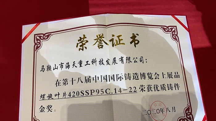 2020年8月17-19,海天在上海開展的鑄造展會取得了優(yōu)異的成績——螺旋葉片獲得了鑄件金獎。此外,很多參展客戶與廠商也紛紛與海天進行交流溝通,獲得了眾多好評。